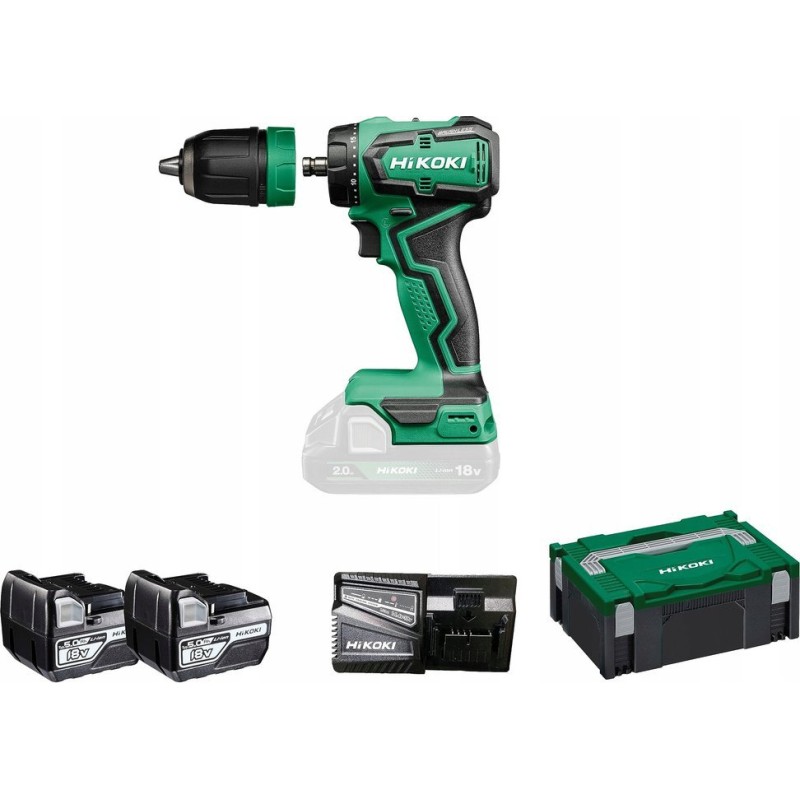 HIKOKI Akku-Bohrschrauber, Quick DS18DDQWPZ (18 V, 2 x 5,0 Ah Lithium-Ionen-Akku, max. konstantes Drehmoment (hart): 55 Nm, Leerlaufdrehzahl 2. Gang: 0–1700