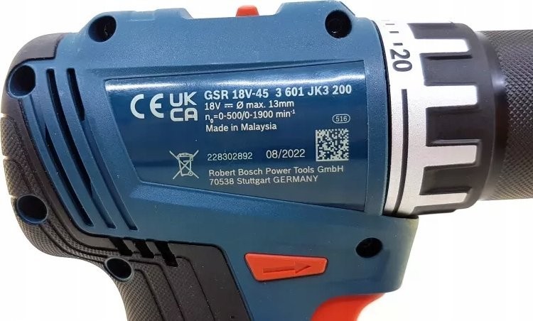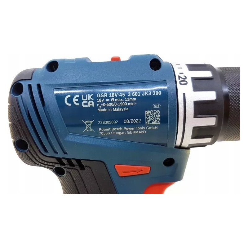 • Artikelname: Bosch Professional Akku-Bohrschrauber 18 V GSR 18 V-45 (Drehzahl 1900 U/min, 2 x 3,0-Ah-Akkus, Ladegerät GAL 18 V-40, in L-BOXX), 06019K3204, blau