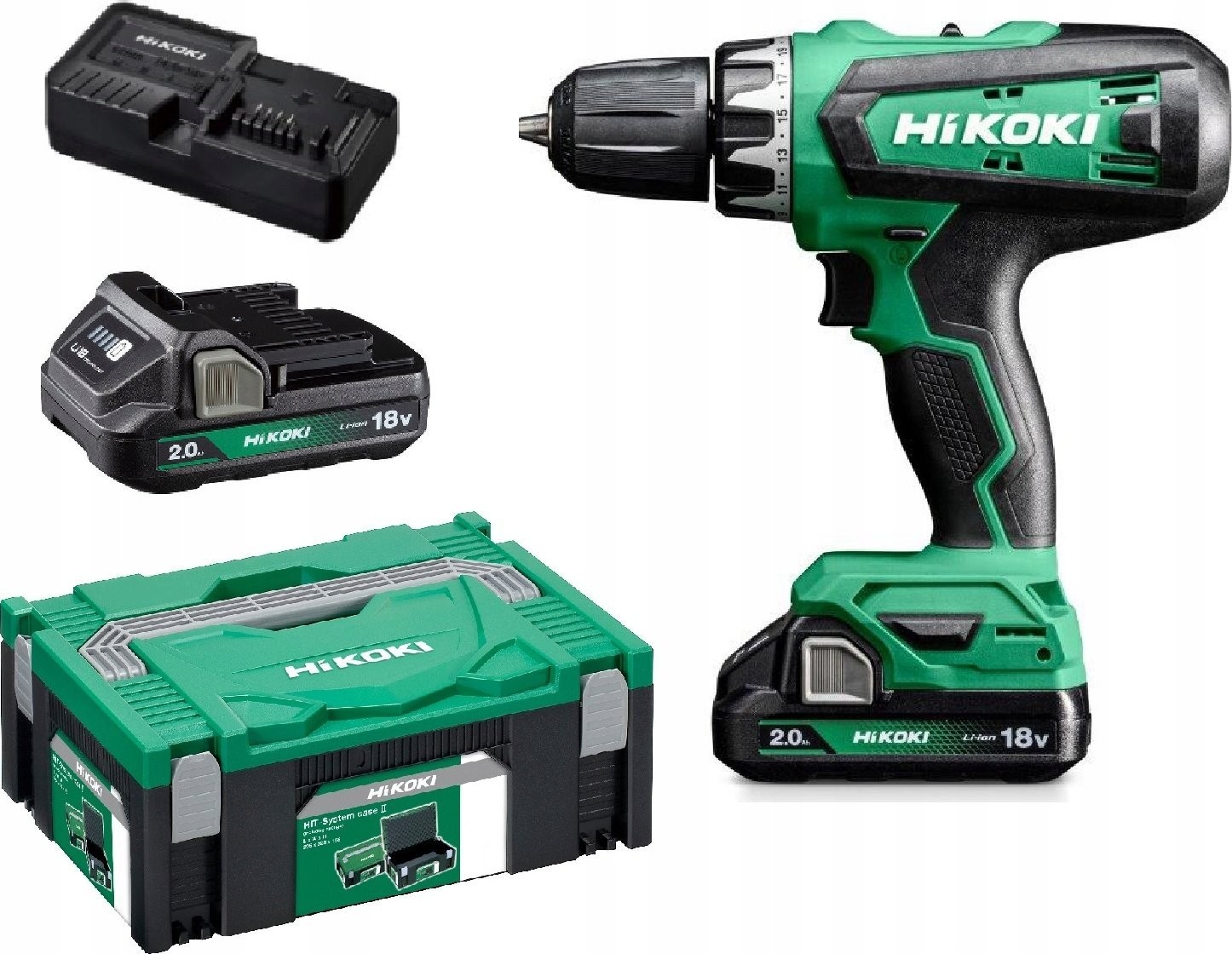 Akku-Bohrschrauber HiKOKI 18 V 53 Nm + 2 Akkus 2,0 Ah + Ladegerät + HitSystem-Koffer