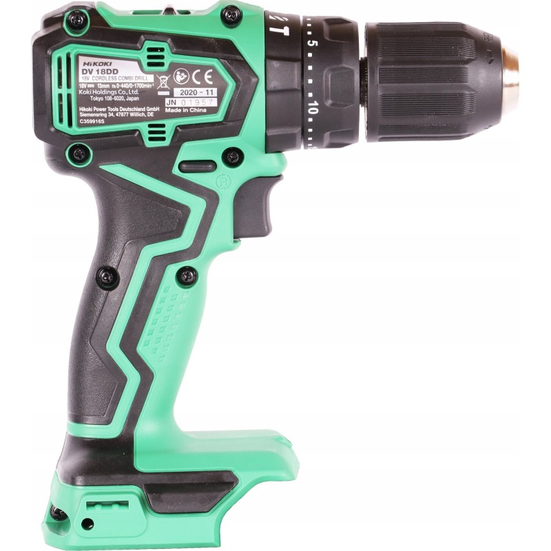 • Der DS18DD wird von einem bürstenlosen Motor angetrieben und ist mit einem schlüssellosen Bohrfutter, einer automatischen Spindelarretierung, einer 22-stufigen Kupplung, einem rutschfesten Soft-Touch-Griff sowie einer LED-Beleuchtung ausgestattet.