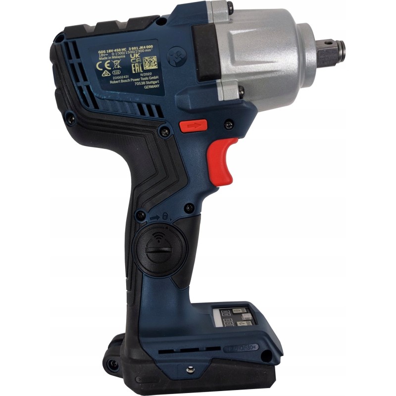 Der Bosch GDS 18V-450 HC Professional ist ein 18-V-Akku-Werkzeug, das hohe Mobilität und Flexibilität bei der Arbeit gewährleistet. Dank des bürstenlosen Motors erreicht das Werkzeug eine beeindruckende Drehzahl von 2300 U/min, was eine schnelle und effiziente Ausführung von Aufgaben ermöglicht. Der Schlagschrauber zeichnet sich durch ein maximales Drehmoment von 450 Nm aus, wodurch er sich ideal zum Anziehen von harten Schrauben und Muttern eignet.