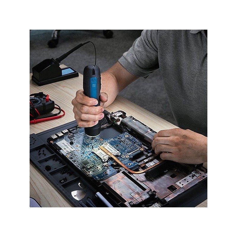 Der Schrauber verfügt über eine integrierte Beleuchtung in Form eines LED-Rings, der die Sicht im Arbeitsbereich effektiv verbessert. Dieser dient gleichzeitig als Ladezustandsanzeige, sodass du den Akkustand leicht kontrollieren kannst. Der eingebaute Akku mit einer Kapazität von 2,0 Ah lässt sich bequem über ein Standard-USB-C-Kabel aufladen.