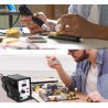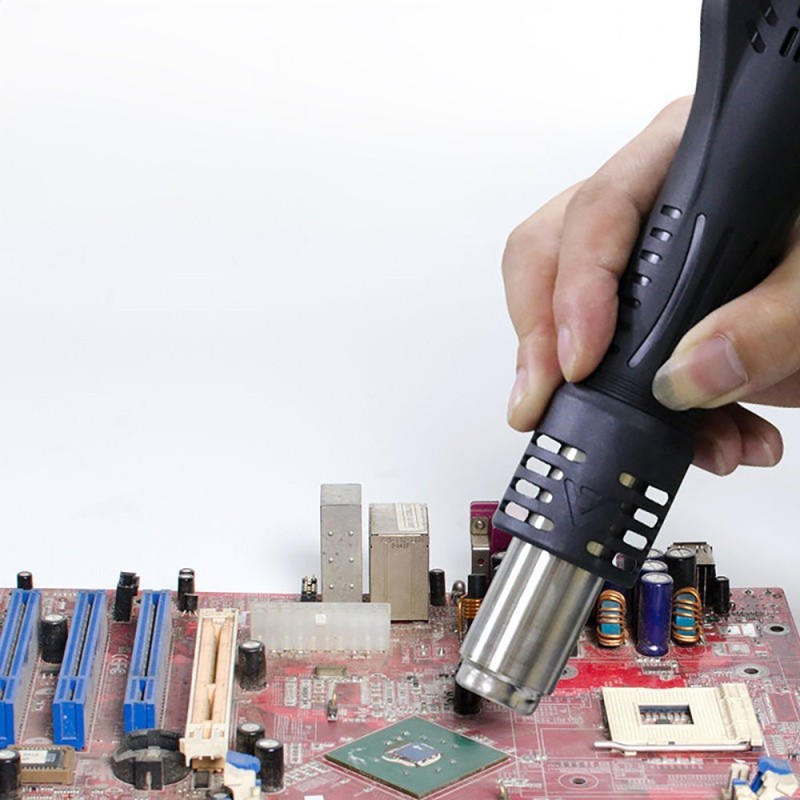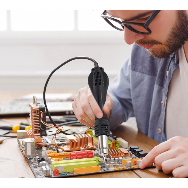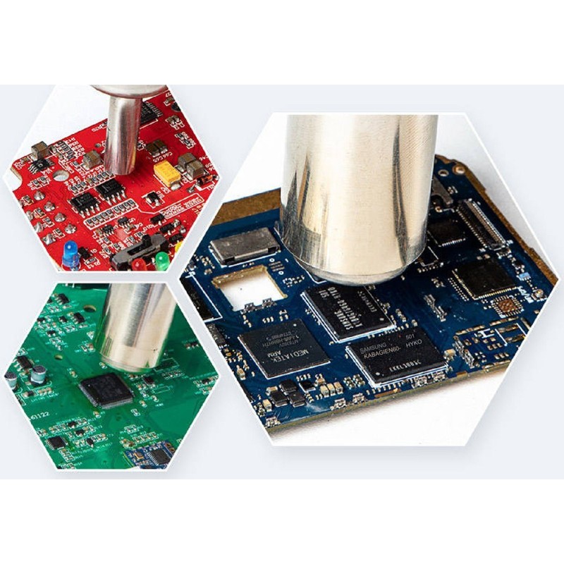 Das Gerät bietet einen breiten Temperaturregelungsbereich von 100 °C bis 480 °C, wodurch die Einstellungen an verschiedene Arten von elektronischen Bauteilen angepasst werden können. Die präzise Temperaturregelung ermöglicht das sichere und effektive Löten empfindlicher Komponenten wie integrierter Schaltkreise oder Kondensatoren.