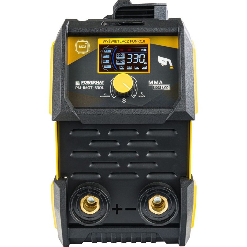 Das Modell PM-IMGT-330L ist ein Inverter-Schweißgerät, dessen Konstruktion auf leistungsstarken IGBT-Transistoren basiert. Es ist mit einem gut lesbaren LCD-Display ausgestattet, das den aktuellen Schweißstrom anzeigt, der über Tasten eingestellt werden kann.