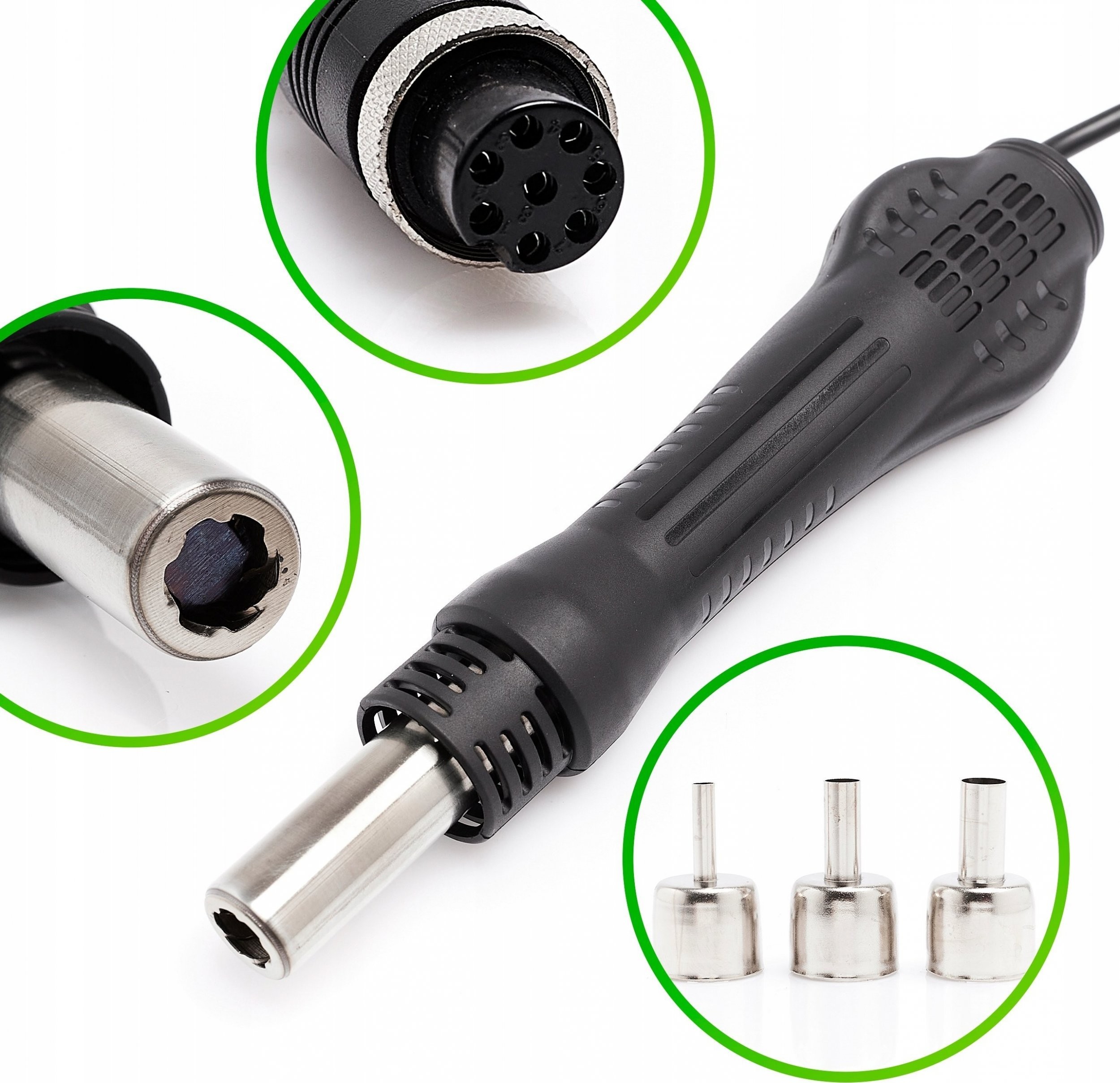 ⚡ Entwickelt für Lötarbeiten an Bauteilen wie SOIC-, QFP-, PLCC-, BGA- und SMD-Chips usw. sowie zum Erwärmen, Ausheizen von Schrumpfschläuchen, Auftauen, Auflösen von Klebstoffen, Ausbrennen von Farben, Vorwärmen usw.