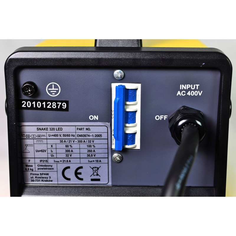 Der Inverter-Schweißer Snake 320 LED ist eine leichte und tragbare Energiequelle. Er ermöglicht das Schweißen mit ummantelten Elektroden verschiedener Stahlsorten: Kohlenstoffstahl, Edelstahl, Aluminium, hitzebeständiger Stahl, Gusseisen sowie andere Nichteisenmetalle. Es können verschiedene Elektrodentypen verwendet werden: Rutil-, basische, saure usw. Das Gerät ist für den Einsatz im Freien und in Innenräumen, sowohl drinnen als auch draußen, vorgesehen. Das Gerät SNAKE 320 LED findet Anwendung beim Schweißen von Rohren, Kesseln, Druckbehältern usw. Es kann überall dort eingesetzt werden, wo eine hervorragende Schweißqualität gefordert ist. Es zeichnet sich durch einen hohen Wirkungsgrad von 300 A/60 % aus. Es verfügt über hervorragende Lichtbogeneigenschaften bei Rutil- und basischen Elektroden.