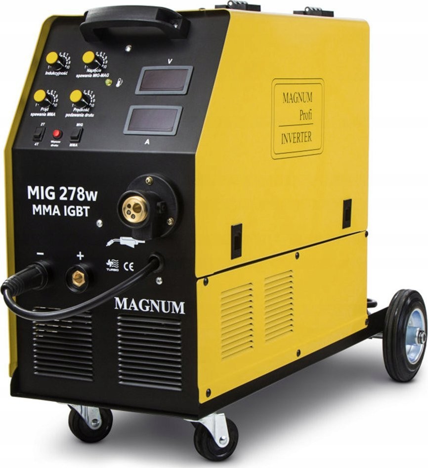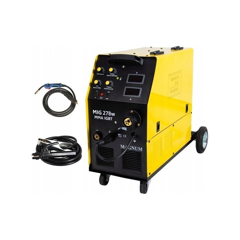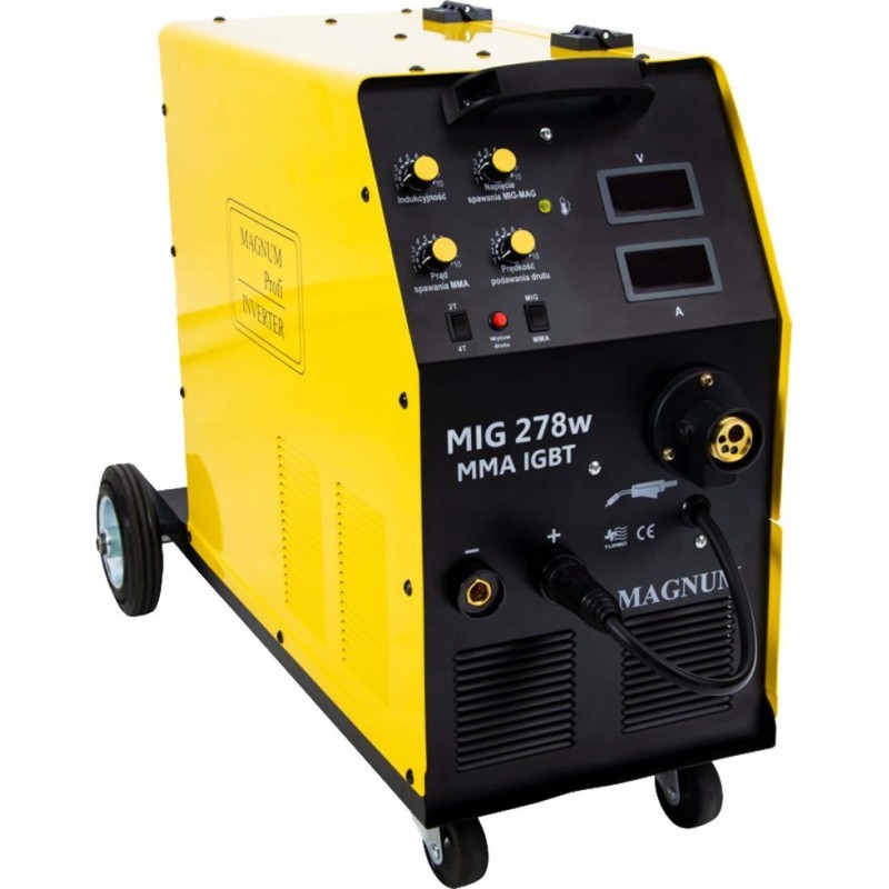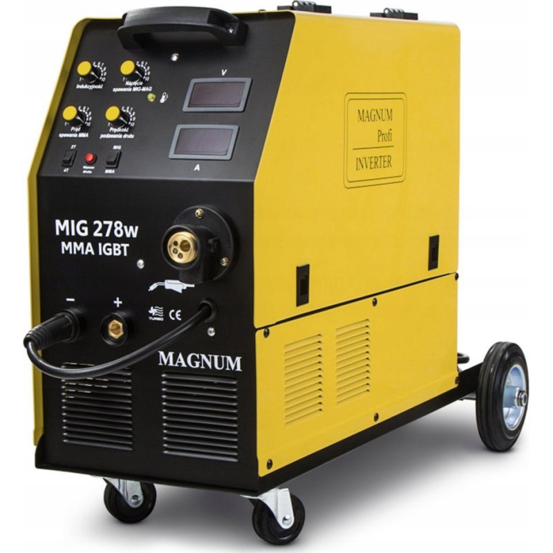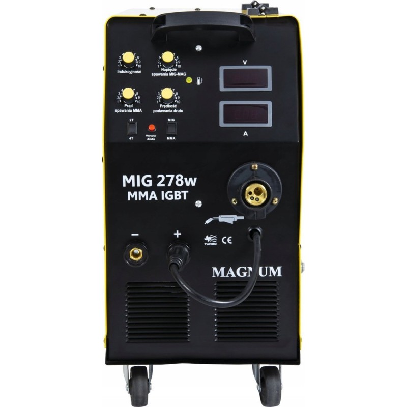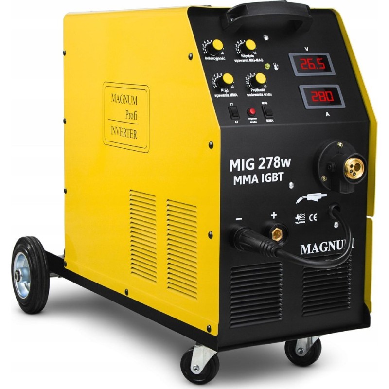 Das Gerät MIG 278w MMA IGBT der Marke Magnum ist ein professionelles halbautomatisches Schweißgerät, das für das manuelle, elektrische Schweißen von kohlenstoffarmem, niedriglegiertem Stahl (MAG), legiertem Stahl (MIG) sowie Aluminium und dessen Legierungen bestimmt ist.