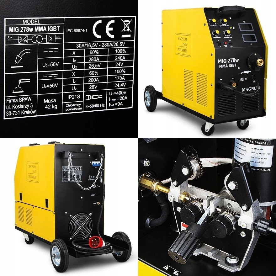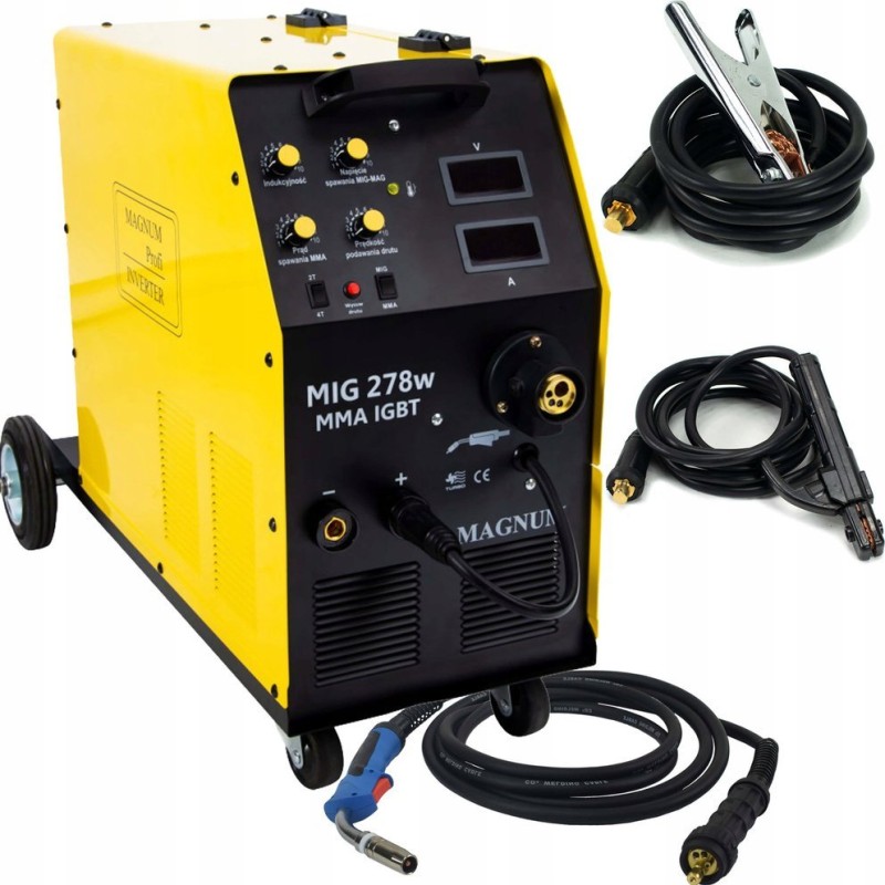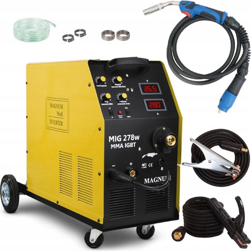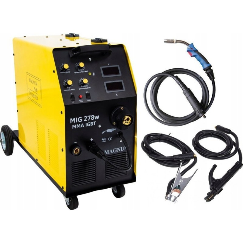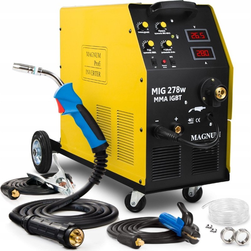 Das Gerät MIG 278w MMA IGBT der Marke Magnum ist ein professionelles halbautomatisches Schweißgerät, das für das manuelle, elektrische Schweißen von kohlenstoffarmem, niedriglegiertem Stahl (MAG), legiertem Stahl (MIG) sowie Aluminium und dessen Legierungen bestimmt ist.
