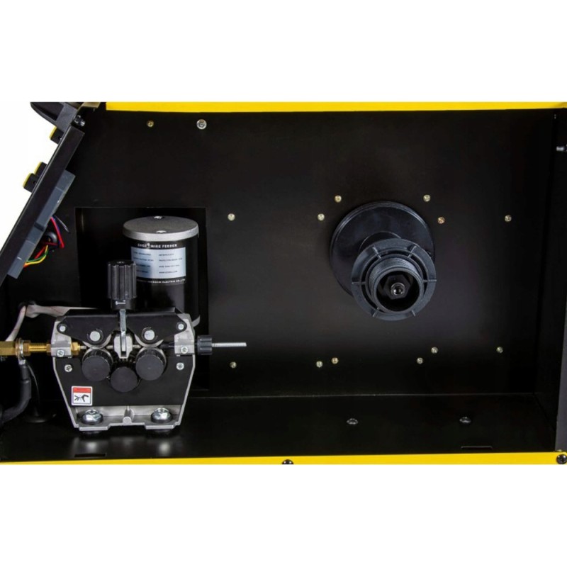 Das Gerät verfügt über einen Mechanismus zur Polaritätsumkehr. Es ermöglicht den Anschluss klassischer Schweißkabel und das Schweißen mit ummantelten Elektroden, wodurch das halbautomatische Gerät in ein Elektroden-Schweißgerät umgewandelt wird, erlaubt aber auch das gaslose Schweißen mit selbstschützenden Drähten (FLUX).