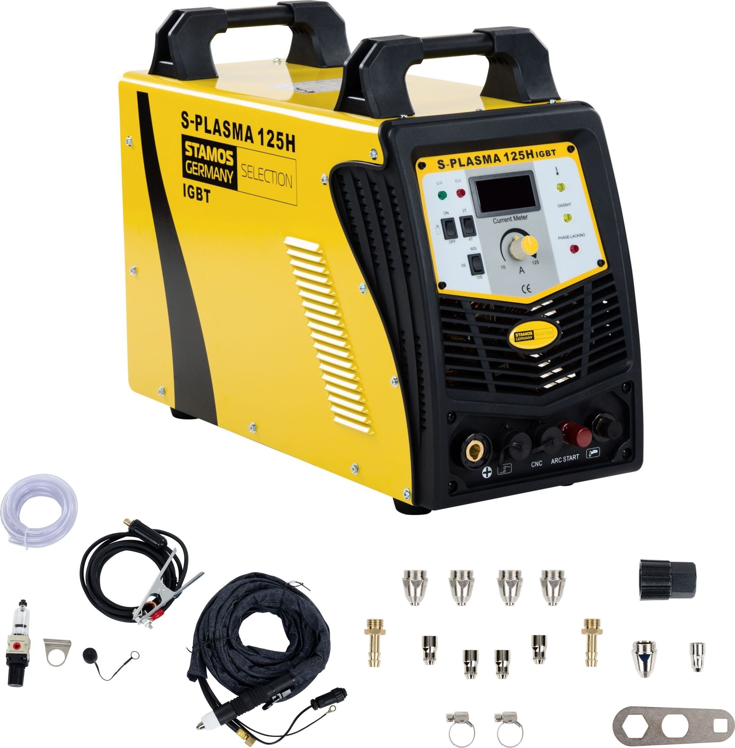Plasmaschneiden – dank einer Stromstärke von bis zu 125 A schneidet das Gerät problemlos Metalle wie Eisen, Edelstahl, Gusseisen, Kupfer oder Aluminium. Der Luftdruck ist stufenlos einstellbar, was eine präzise Steuerung des Plasmastrahls ermöglicht. Das Nicht-Durchbrennen des Materials, geringe Verformungen und eine glatte Schnittfuge sind nur einige der Vorteile, die sich aus der Verwendung des multifunktionalen Geräts von Stamos Germany ergeben.
