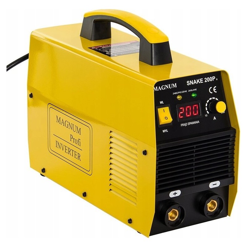 Das Invertergerät SNAKE 200 P IIW der Marke MAGNUM ist ein professionelles Schweißgerät für das manuelle, elektrische Schweißen nach dem MMA-Verfahren unter Verwendung von ummantelten Elektroden. Es ist für verschiedene Arten von Schweißarbeiten in Schlosserwerkstätten, Reparaturwerkstätten, in der Industrie, in Fabriken usw. vorgesehen.