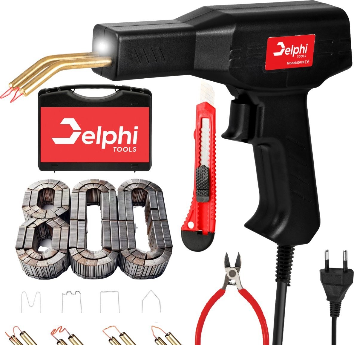 Delphi Tools Kompakte Kunststoff-Heftmaschine + 800 Heftklammern, schwarz