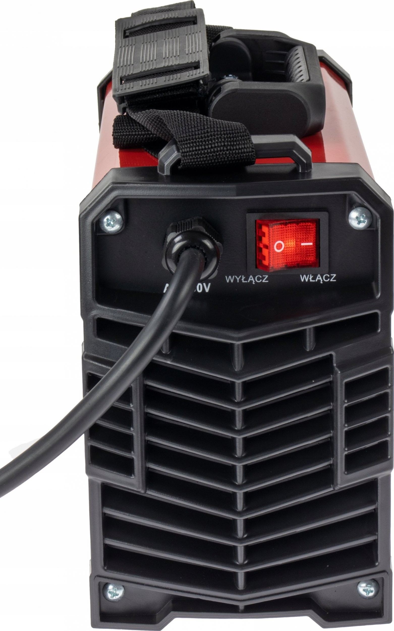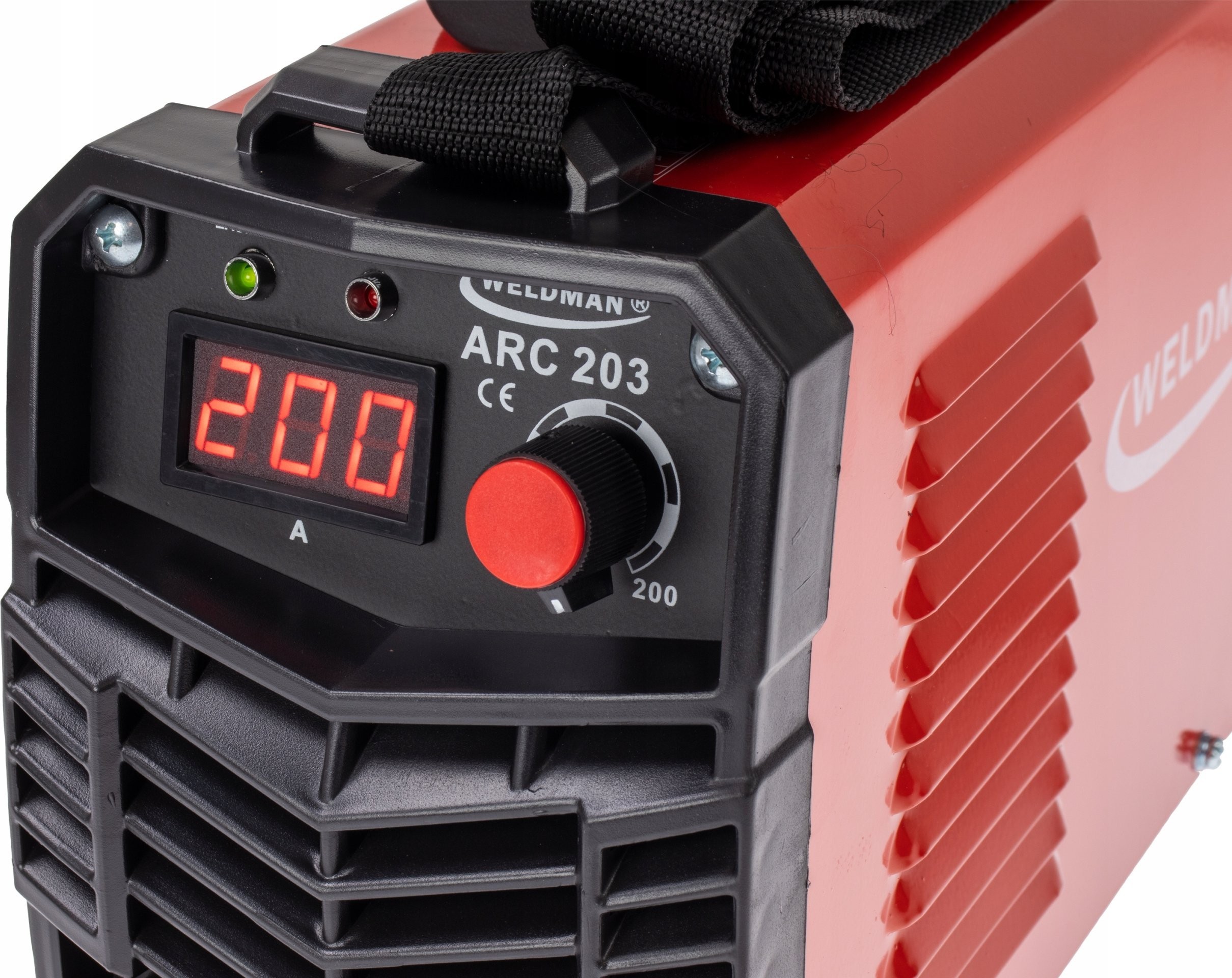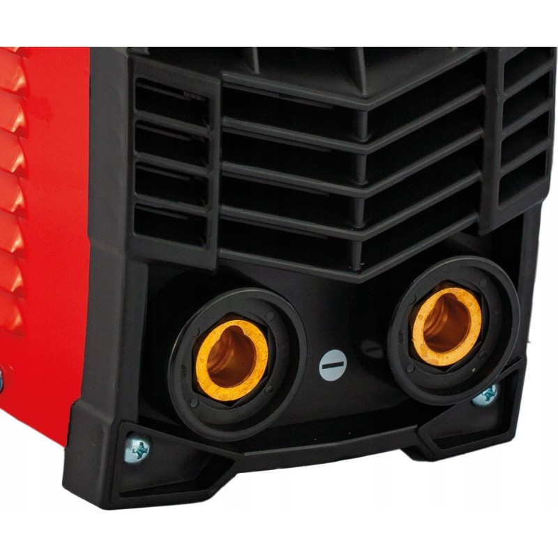 Das Schweißgerät ARC 230 verfügt über eine digitale Anzeige des Schweißstroms, die mit einem einfachen Leuchtanzeigesystem ausgestattet ist. LEDs auf der Vorderseite zeigen an, ob das Gerät an die Stromversorgung angeschlossen ist (grüne LED) oder ob es aufgrund einer Überlastung abgeschaltet wurde (rote LED).