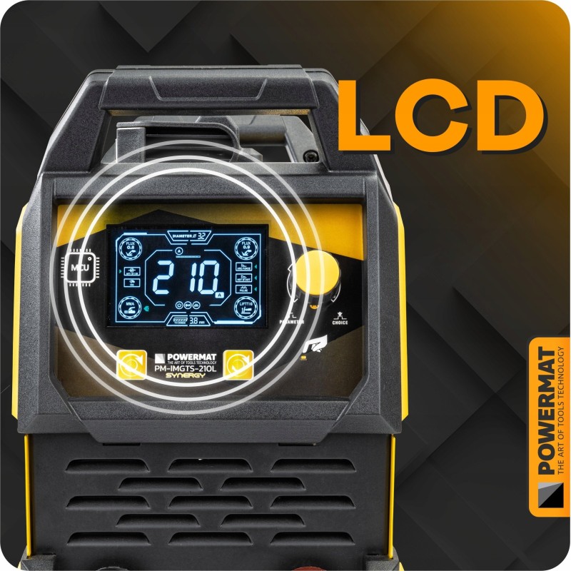 Das Schweißgerät ist mit einem gut lesbaren LCD-Display und einer Synergieschweißfunktion ausgestattet, was eine präzise Anpassung der Betriebsparameter ermöglicht. Dank der intuitiven Bedienung können selbst Anfänger das Gerät ganz einfach nach ihren Bedürfnissen konfigurieren, was den Arbeitskomfort erheblich steigert.