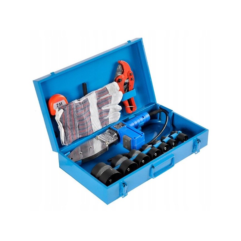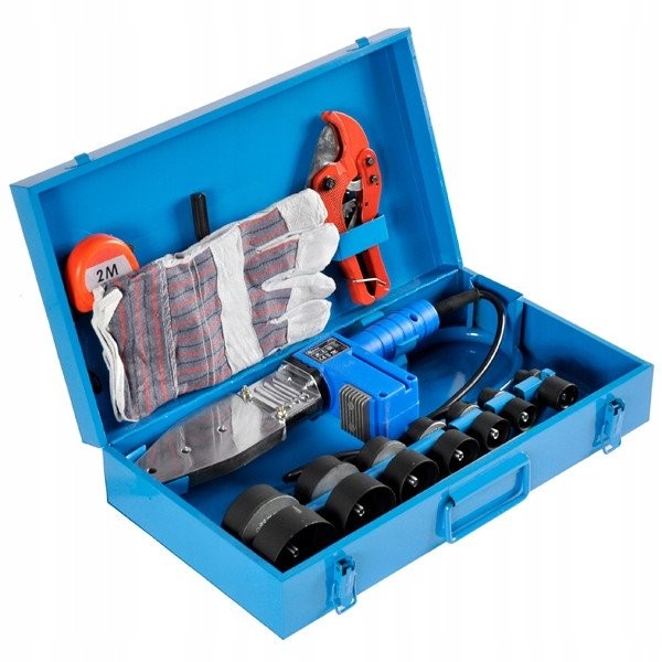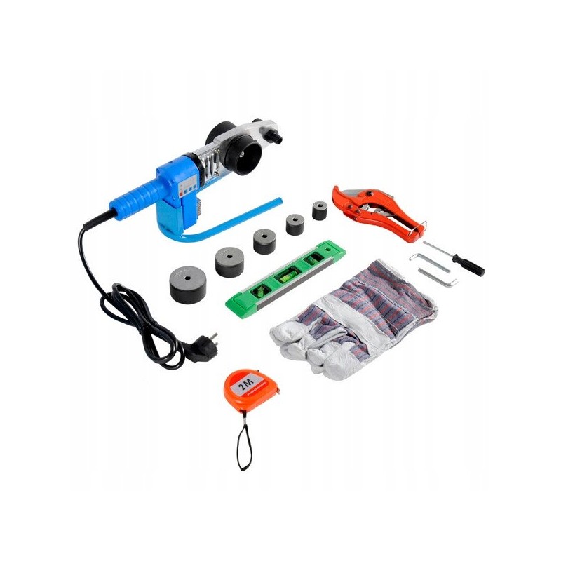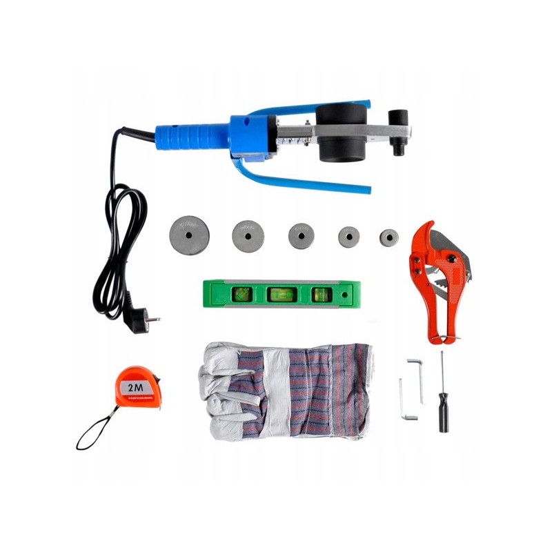 Neben dem Schweißgerät selbst sind im Set auch praktische Zubehörteile enthalten, wie z. B. eine Rohrschere, Handschuhe, eine Wasserwaage, ein Schraubendreher, ein 2 m langes Maßband sowie Inbusschlüssel. Damit ist das Set ein komplettes Arbeitswerkzeug, das sofort nach dem Kauf einsatzbereit ist.