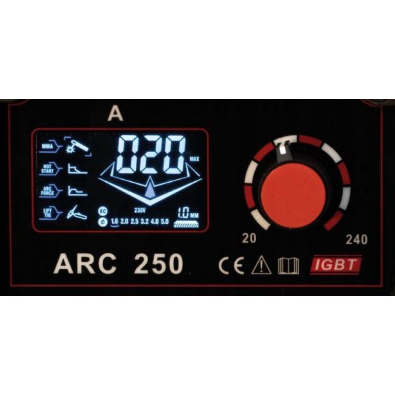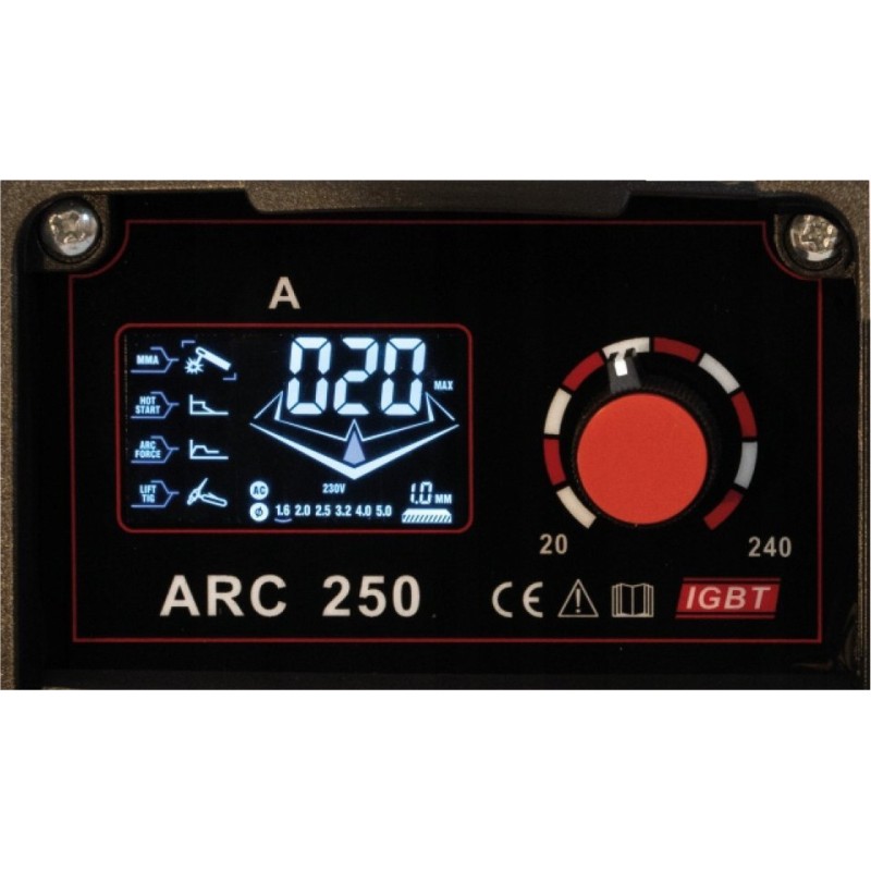 Das mit IGBT-Technologie gefertigte Schweißgerät ARC 250 ist für das Schweißen von Kohlenstoffstahl, legiertem Stahl, Edelstahl, säurebeständigem Stahl, Gusseisen und Aluminium im MMA- und TIG-LIFT-Verfahren ausgelegt.