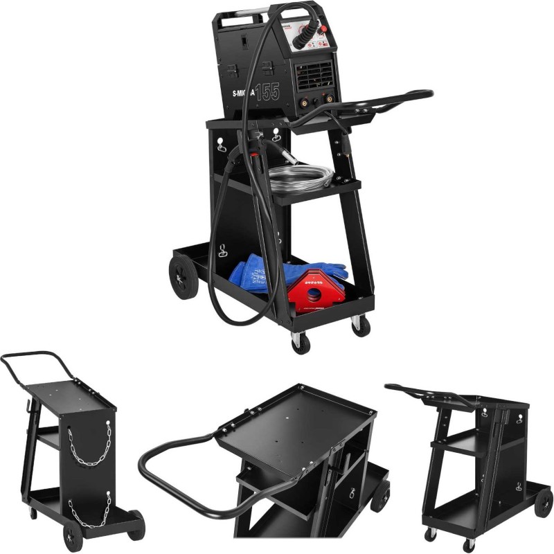 Stamos Schweißwagen aus Stahl für die Werkstatt mit 3 Ablagen, Tragkraft bis zu 75 kg