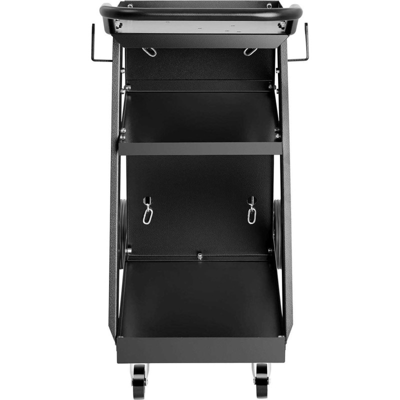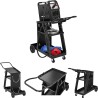Der Wagen ist mit drei geräumigen Ablagen ausgestattet, die zur Aufbewahrung von Schweißzubehör dienen. Die obere Ablage mit den Maßen 45 x 30 cm bietet Platz für Schweißgeräte unterschiedlicher Größe. Die Mobilität des Wagens wird durch vier Rollen gewährleistet. Die beiden hinteren Räder sind größer (Durchmesser 150 mm), was ihre Belastbarkeit erhöht, während die vorderen, schwenkbaren Räder (Durchmesser 65 mm) das Manövrieren der Ausrüstung ermöglichen.