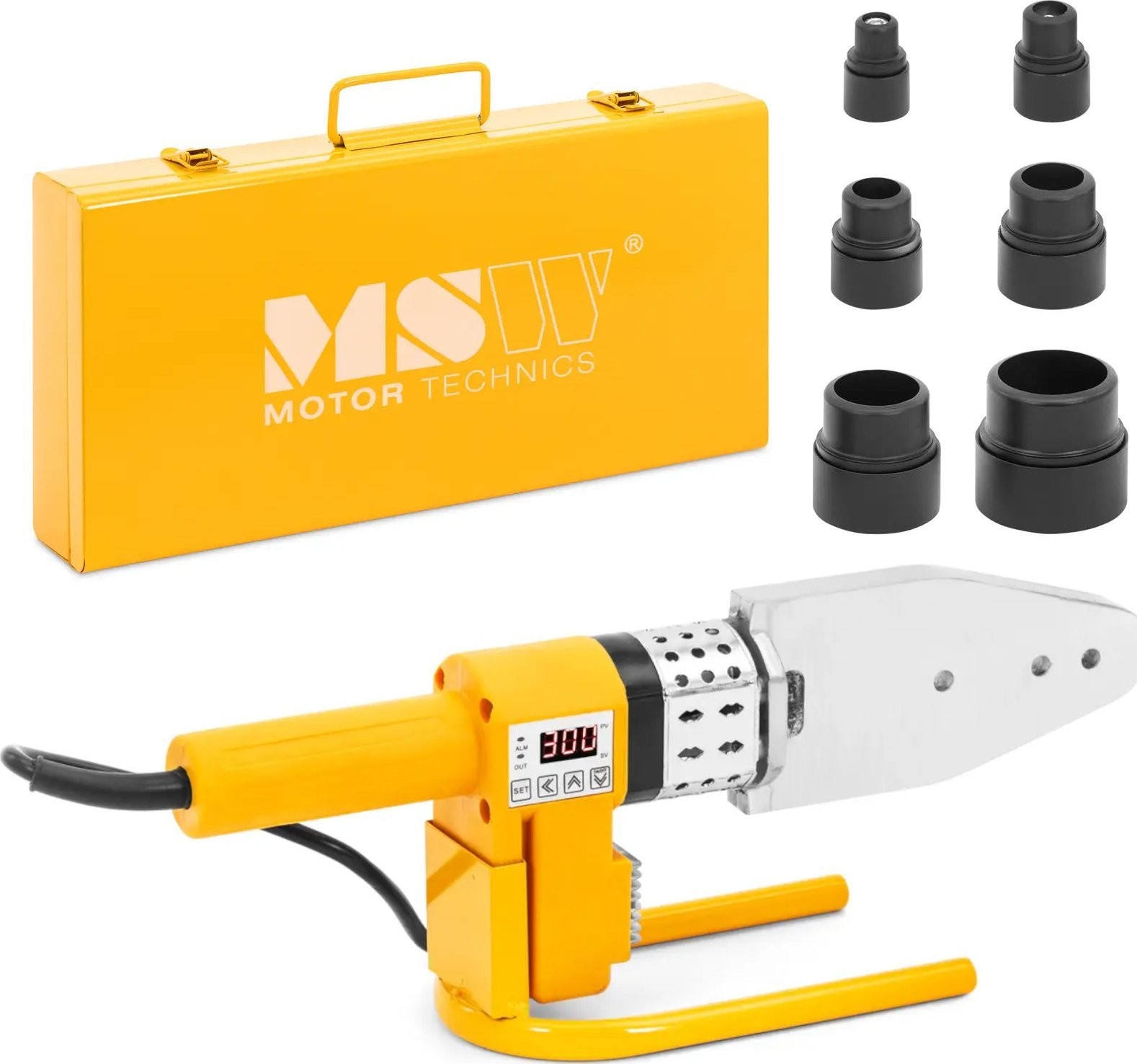 Rohrschweißgerät für PP-, PB-, PE- und PV-Rohre mit einem Durchmesser von 20–63 mm, 300 °C, 950 W – Set Rohrschweißgerät für PP-, PB-, PE- und PV-Rohre mit einem Durchmesser von 20–63 mm, 300 °C, 950 W – Set