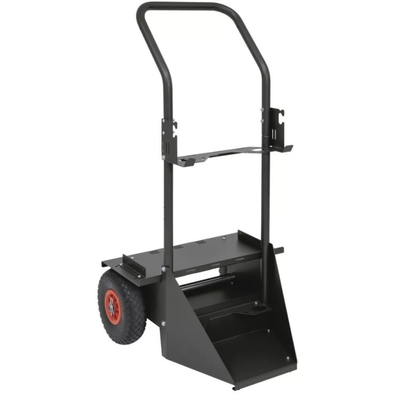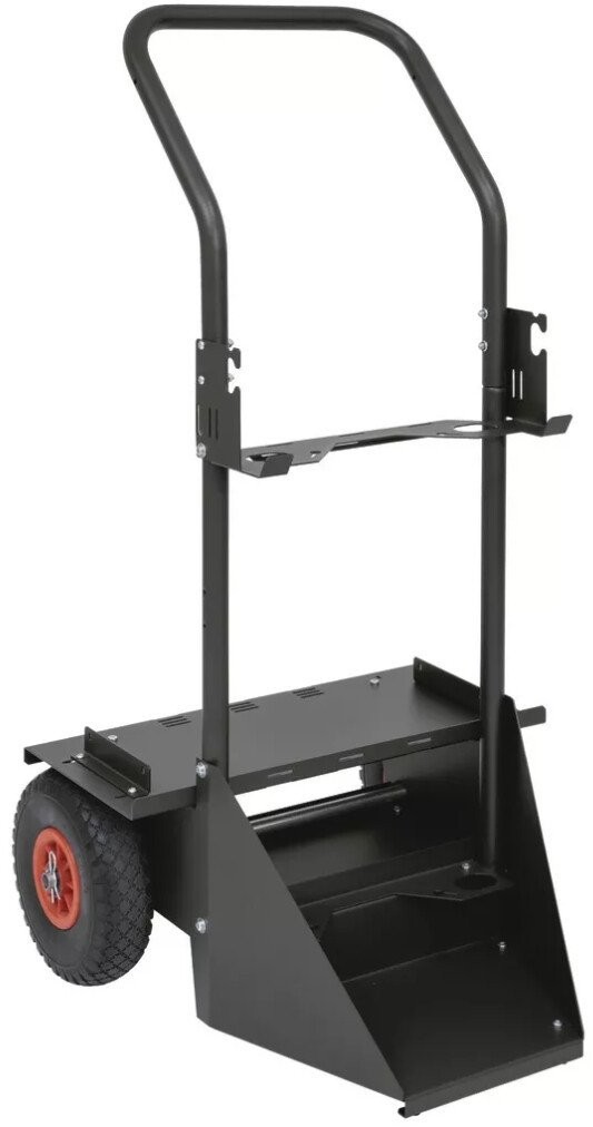 Der Wagen eignet sich ideal für den Transport von Schweißgeräten und Materialien und ist damit ein unverzichtbares Hilfsmittel in Werkstätten und auf Baustellen.