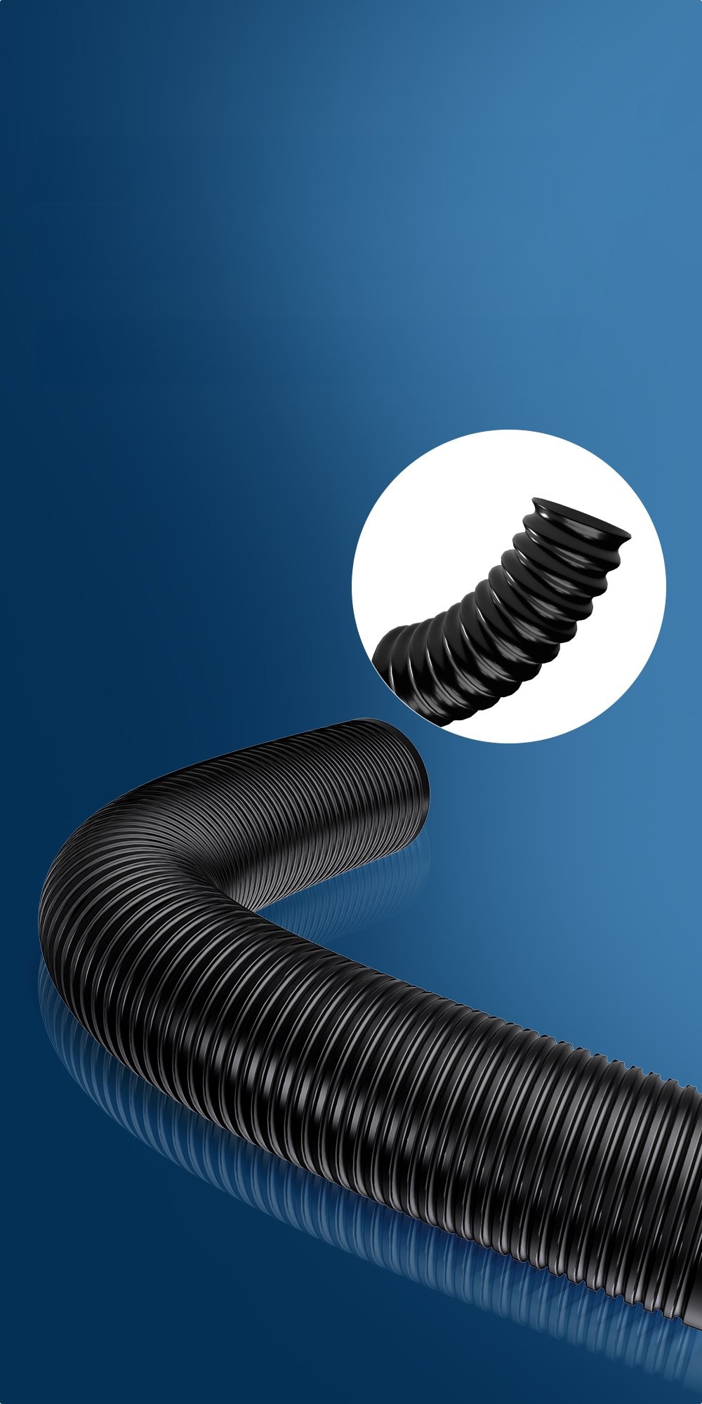 • Luftschlauch: feuerfest, teleskopisch, aus PP