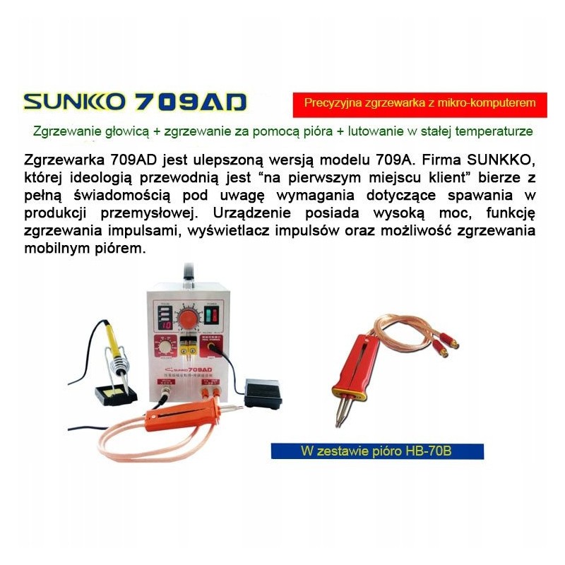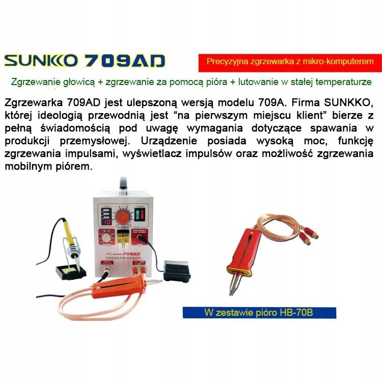 Das Impuls-Punktschweißgerät SUNKKO 709AD ist ein modernes Gerät, das die Funktionen des Schweißens, Lötens und Präzisionsschweißens in sich vereint. Dank des eingebauten Mikrocomputers steuert das Gerät Impulse und Schweißenergie effizient, was sich in hoher Qualität und Langlebigkeit der Schweißnähte niederschlägt. Es ist die ideale Lösung sowohl für Profis als auch für Hobbybastler, die ein vielseitiges Werkzeug für die Bearbeitung verschiedener Materialien benötigen.