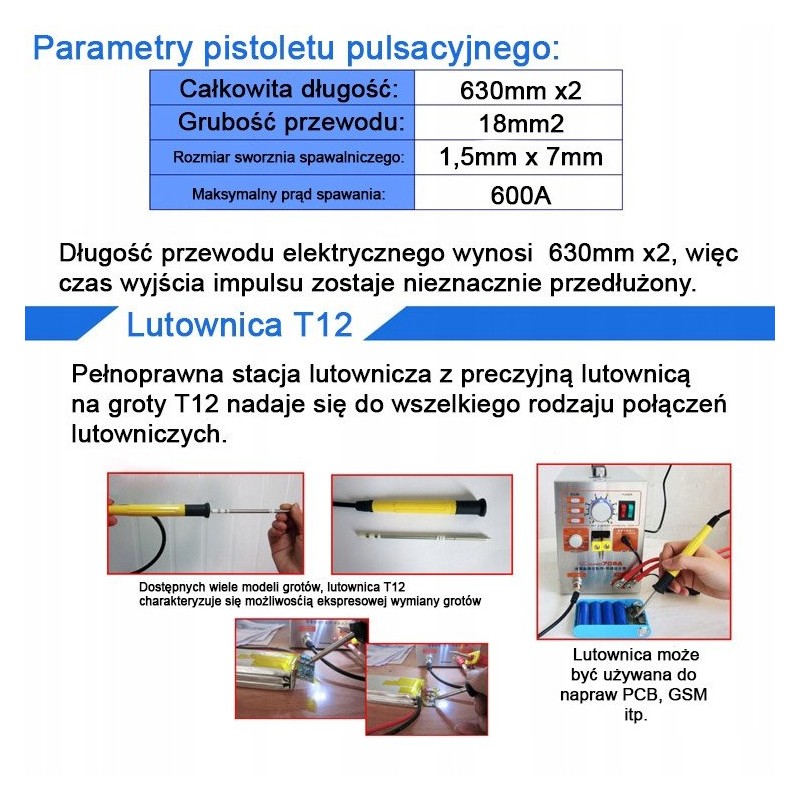 Das Schweißgerät SUNKKO 709AD zeichnet sich durch eine maximale Leistung von 2200 W und eine Stromstärke im Bereich von 50 bis 750 A aus, was ein effektives und schnelles Schweißen gewährleistet. Das Gerät unterstützt verschiedene Materialstärken, von 0,03 mm bis 0,3 mm für den Kopf und bis zu 0,2 mm für die Spitze, was es zur idealen Lösung für die Arbeit mit verschiedenen Akkus und anderen Bauteilen macht. Darüber hinaus erleichtern das doppelte LED-Display und die Beleuchtung im Kopf die Arbeit unter schwierigen Lichtverhältnissen.