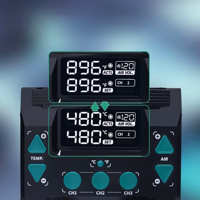 Das digitale LED-Display ermöglicht eine genaue Einstellung der Temperatur im Bereich von 100 bis 500 °C, was bei der Arbeit mit verschiedenen Materialien entscheidend ist. Anwender können die Temperatur einfach überwachen und regulieren, was zu besseren Löt-Ergebnissen führt.