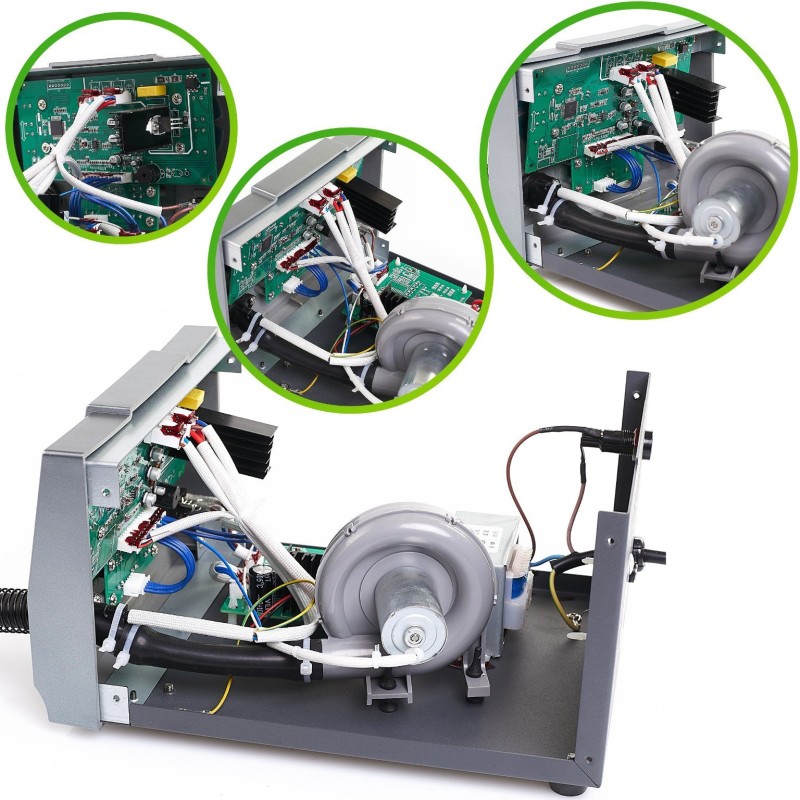Sicherheit und Langlebigkeit sind die wichtigsten Merkmale der Heißluft-Lötstation 861DW. Das Gerät ist mit einem intelligenten Kühlsystem ausgestattet, das die Temperatur automatisch auf 100 °C senkt, sobald der Lötkolben auf den Ständer abgelegt wird, was die Lebensdauer des Heizelements deutlich verlängert. Darüber hinaus erhöhen die Tastensperre und der Schutz vor versehentlichem Drücken den Bedienkomfort.