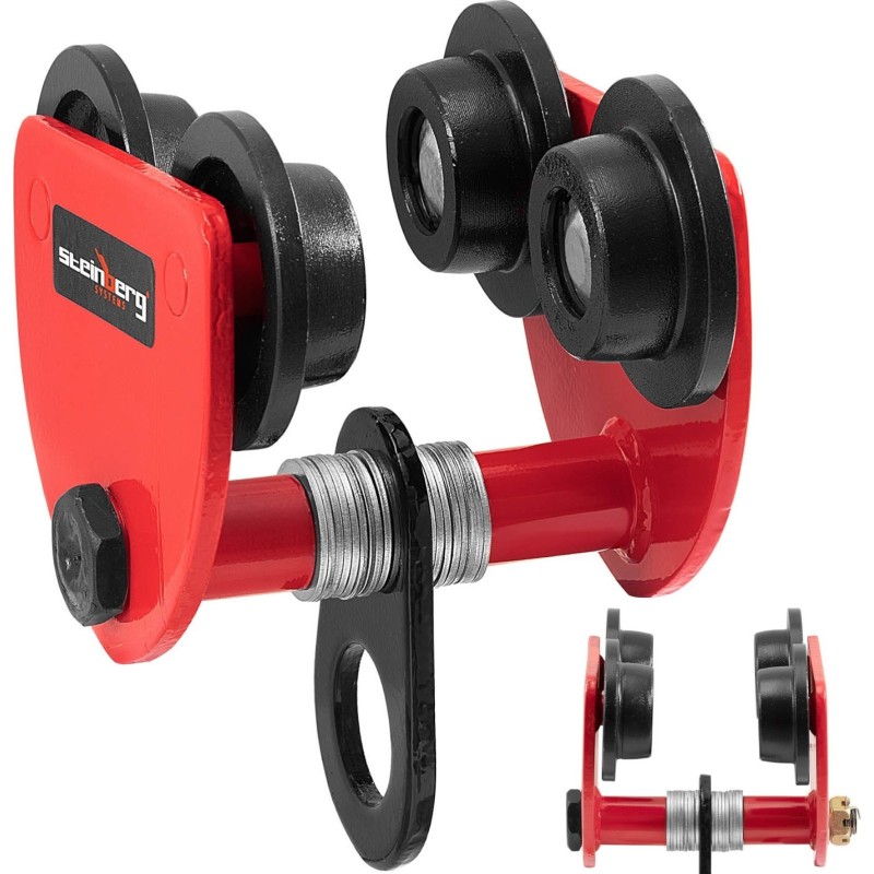 Der Laufkatze der Marke Steinberg ermöglicht den einfachen Transport schwerer Lasten bis zu 1000 kg . Die Konstruktion des Geräts besteht aus Kohlenstoffstahl. Die Beschichtung schützt das Gerät vor Korrosion. Der Laufwagen zeichnet sich durch einen Sicherheitsfaktor von 1x bezogen auf die maximale Tragfähigkeit aus, erfüllt höchste Standards und gewährleistet einen reibungslosen sowie störungsfreien Betrieb. Das Doppelrollensystem ist so konzipiert, dass es sowohl auf geraden und konischen Trägern als auch auf gekrümmten Schienen funktioniert. Der Laufwagen lässt sich leicht an Trägern mit entsprechender Breite montieren. Das Bewegen schwerer Lasten ist effizient und komfortabel.