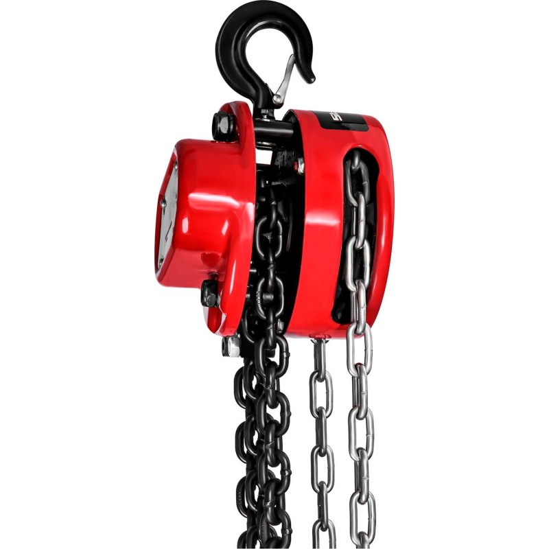 - Leistung – die maximale Tragkraft von bis zu 2 t ermöglicht das Heben von Gegenständen auf eine Höhe von 3 m, - Komfort – Steuerhebel und Sicherheitsmechanismus, der den Betrieb des Geräts stoppt, sobald die Kette losgelassen wird, - Sicherheit – Stahlkonstruktion, hochwertige Verarbeitung, zwei drehbare Haken und ein Hebel mit rutschfestem Griff.