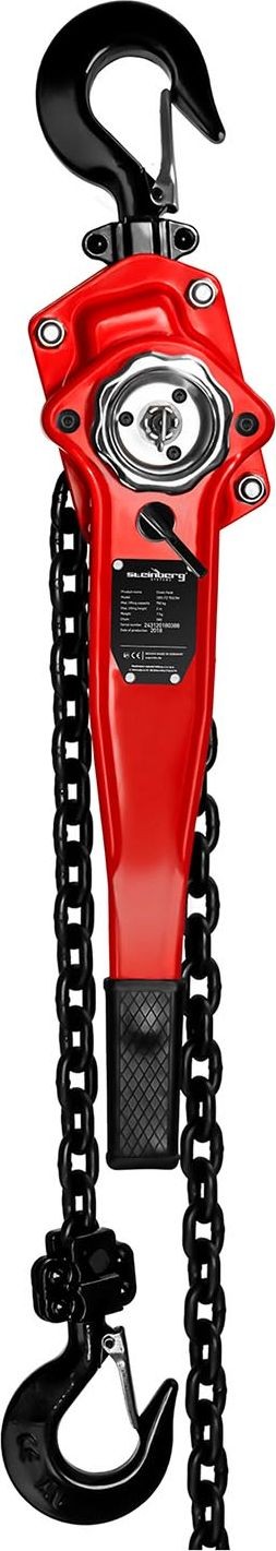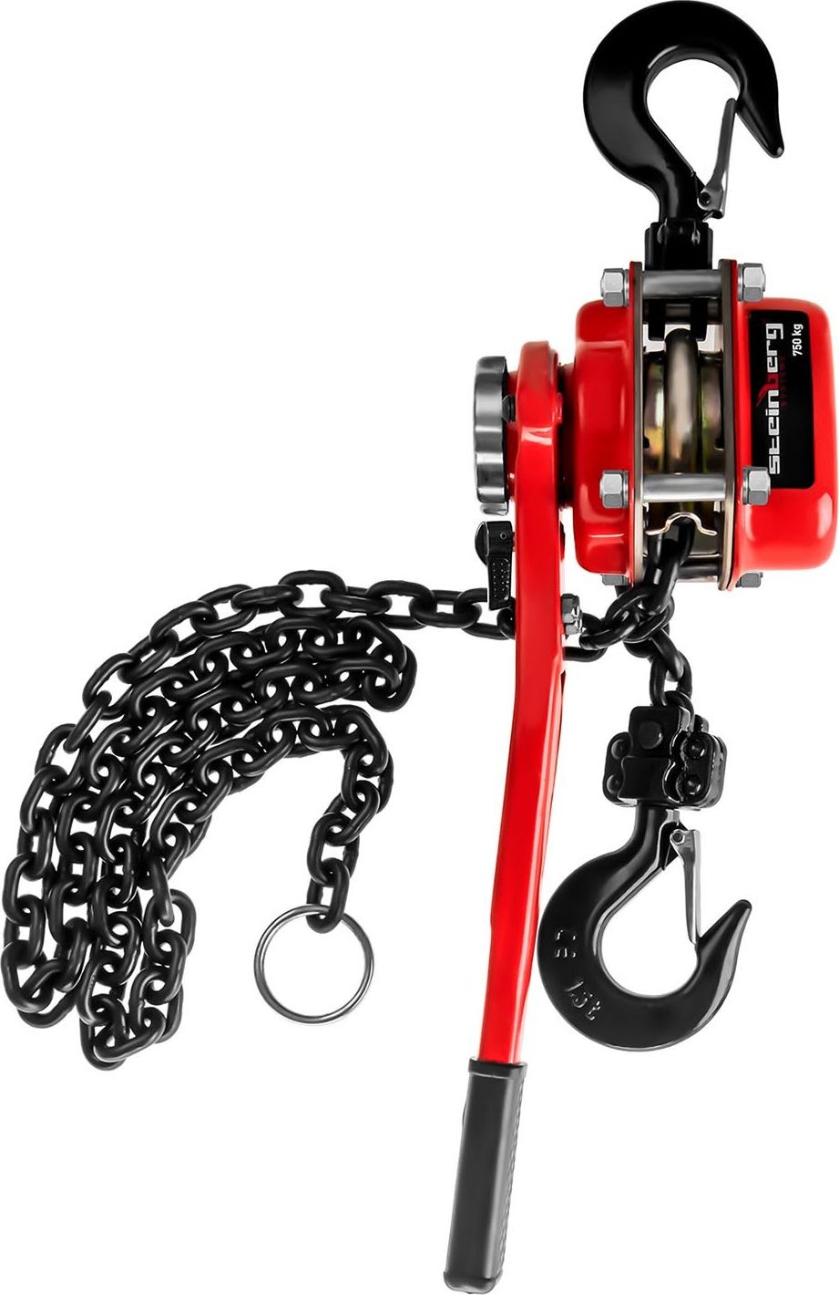 Herstellernummer: Steinberg Systems 10030380 Der Kettenzug der deutschen Marke Steinberg Systems ist ein vielseitiges Gerät, das sich hervorragend für verschiedene Produktionsbetriebe, Maschinenbauwerkstätten, Lagerhäuser oder Baustellen eignet. Sein Hauptanwendungsbereich ist das Heben und Senken schwerer Gegenstände. Mit dem manuellen Kettenzug lassen sich Gegenstände mit einem Gewicht von bis zu 750 kg sogar auf eine Höhe von zwei Metern anheben. Dank der robusten Ketten (Typ G80, Glieder mit 6 mm Durchmesser) und der Fertigung der Bauteile aus hochwertigem Stahl ist die Arbeit mit dem Modell SBS-FZ 750/2M sehr sicher. Dazu tragen auch die gummierte Spitze der Steuerwelle und die Arretierung bei, mit der die Last auf der gewünschten Höhe gehalten werden kann. Um den Bedienkomfort zu erhöhen, ist der Hebezug mit zwei drehbaren Haken sowie einem Hebel mit leichtgängiger Übersetzung ausgestattet, der mit einem Mechanismus im Inneren des Gehäuses verbunden ist. Dies ermöglicht ein komfortables Anheben und Absenken des Lastguts. Produktmerkmale