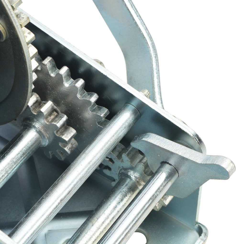 Diese robuste Handwinde mit einem leichten, aber starken Gurtband ist extrem widerstandsfähig. Das aus Polyester gefertigte Gurtband ist korrosions- und witterungsbeständig und verheddert sich während des Einsatzes nicht. Darüber hinaus kann das Gurtband Vibrationen reduzieren, erzeugt nur geringe Reibung und verursacht weniger Kratzer an Ihrer Stoßstange. Dank der Verwendung von hochwertigem Eisen ist die Winde sehr langlebig und wird Ihnen lange Zeit gute Dienste leisten.