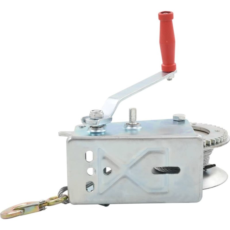 Die hochwertige Handwinde mit einem 10 m langen Seil ist sehr robust. Die Verwendung von hochwertigem Eisen bei der Konstruktion gewährleistet Langlebigkeit. Diese Handwinde eignet sich ideal für den Einsatz an LKWs, Anhängern und anderen Fahrzeugen. Der Griff der Winde ist für den Einsatz an zwei separaten Achsen ausgelegt; jede Achse verfügt über eine eigene Übersetzung, sodass Sie schnell (hierfür ist mehr Kraft erforderlich) oder langsam (hierfür ist weniger Kraft erforderlich, die bessere Wahl zum Ziehen schwerer Gegenstände) ziehen können.