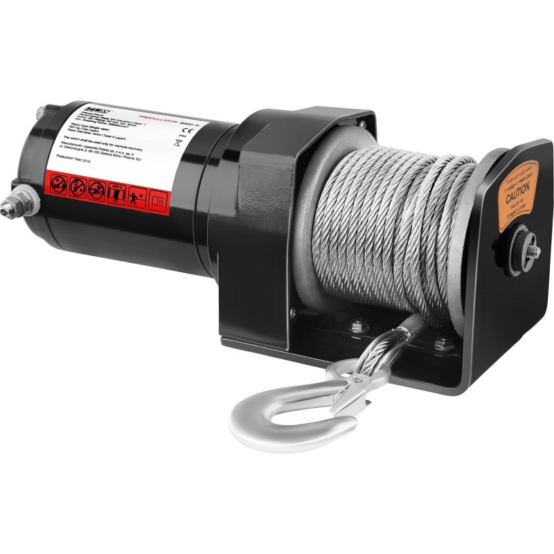 Leistungsstarke Seilwinde der deutschen Marke MSW, die speziell für das Bergen von Fahrzeugen oder anderen Gegenständen aus unwegsamem Gelände entwickelt wurde. Sie bewährt sich in bergigen Gegenden oder beim Offroad-Fahren. Sie eignet sich hervorragend für große, schwere Fahrzeuge, Anhänger, Boote oder Schneepflüge. Sie kann auch in Haushalten oder in der Forstwirtschaft eingesetzt werden, beispielsweise zum Entfernen von Baumstämmen oder Baumstümpfen. Der 1-PS-Motor (750 W) erreicht zusammen mit der großen Trommel und dem robusten Stahlseil eine Zugkraft von 2000 lbs (907 kg). Dies ermöglicht das schnelle und einfache Befreien eines Fahrzeugs aus einem Graben oder einem anderen Geländehindernis. Das dreistufige Planetengetriebe (Vorwärtsgang, Rückwärtsgang und manuelle Kupplung zum schnellen Abrollen des Seils) ermöglicht die Regulierung der Kraftübertragung mittels eines speziellen Getriebes. Das Untersetzungsverhältnis beträgt 153:1. Der intermittierende Betriebszyklus hingegen lässt den Motor im Intervallbetrieb laufen, wodurch er keine Höchsttemperatur erreicht. Um die Lebensdauer des Geräts zu erhöhen, ist im Lieferumfang ein Stahlseil (15 m Länge / 4 mm Durchmesser) enthalten, das dank einer vierfachen Seilführung gegen die meisten mechanischen Beschädigungen resistent ist, selbst bei häufigen Änderungen des Zugwinkels. Für die Sicherheit sorgt ein automatisches Bremssystem, das den angehobenen Gegenstand auch bei Stromausfall sicher hält. Zudem ist die Konstruktion der Winde überlastungsfest und widerstandsfähig gegen Regen, Schnee und Schmutz.