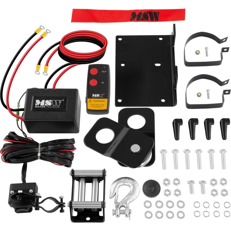 MSW Fahrzeugseilwinde – Offroad-Modell mit Fernbedienung, 12 m Seil, Zugkraft 1590 kg + 4-Tonnen-Block