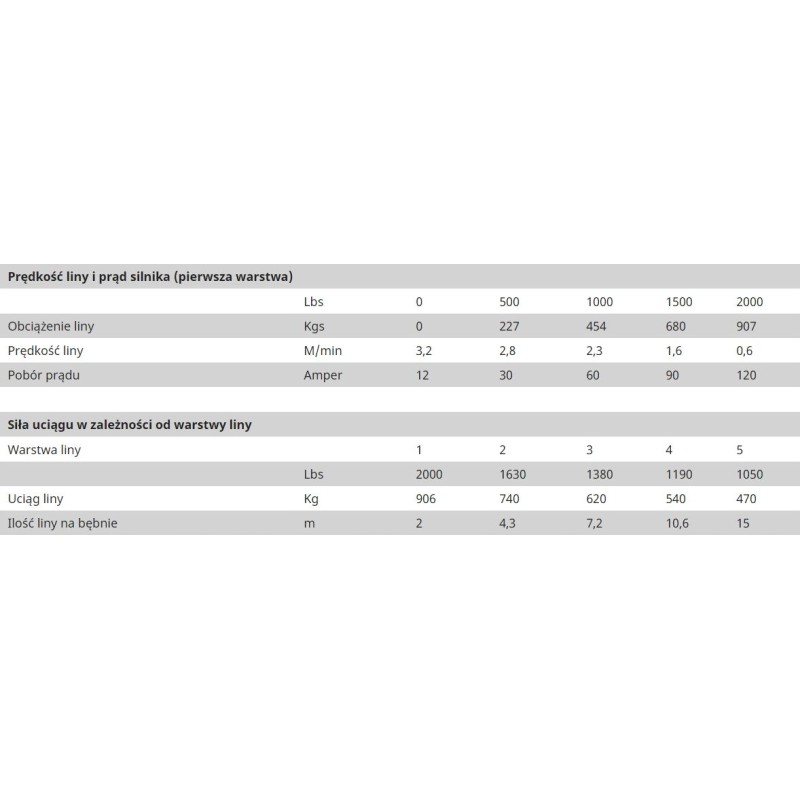 • Zugkraft (Einzelseil): 2000 lbs / 907 kg