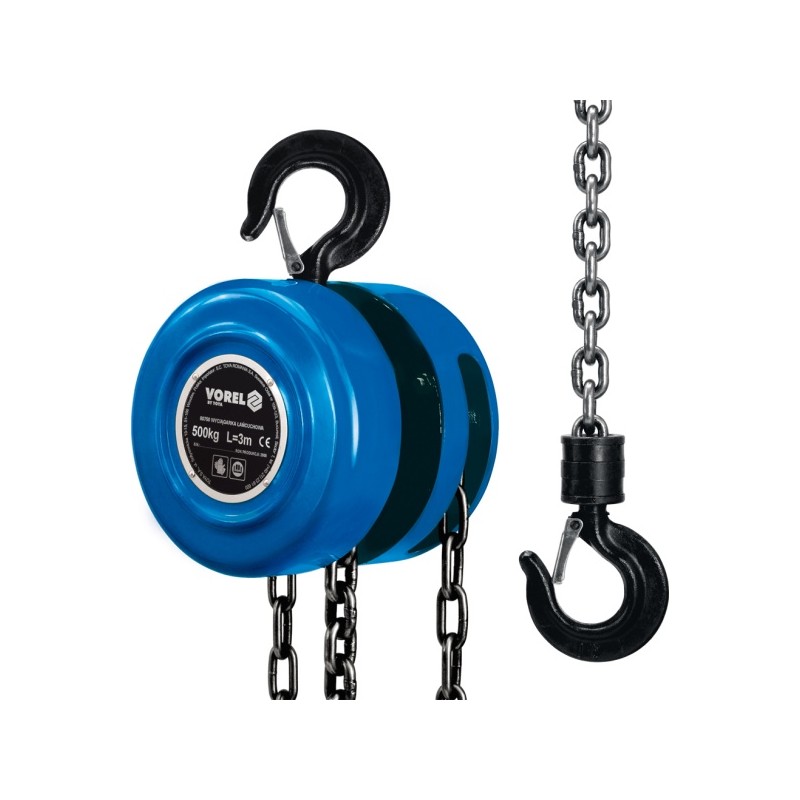 Die Kettenwinde ist ein Gerät zum Heben schwerer Gegenstände in vertikaler Ebene. Sie verfügt über einen Handantrieb und ein leistungsfähiges Planetengetriebe, das das Heben von Lasten mit einem Gewicht von 500 bis 3.000 kg ermöglicht (je nach Windenmodell). Die Kette besteht aus hochwertigem Stahl, der zugfest und alterungsbeständig ist. 100 % der Kettenglieder werden mittels Widerstands- und Funkenverschweißung verbunden, was eine angemessene Qualität und Festigkeit der Schweißnaht garantiert. Die Glieder werden zudem kalibriert, um die korrekte Form und die Abmessungen jedes einzelnen Glieds sicherzustellen und ihre Festigkeit zu überprüfen. Die Winde ist mit sicheren Haken ausgestattet, die über eine Verriegelung verfügen, die ein Aushängen der Last verhindert.