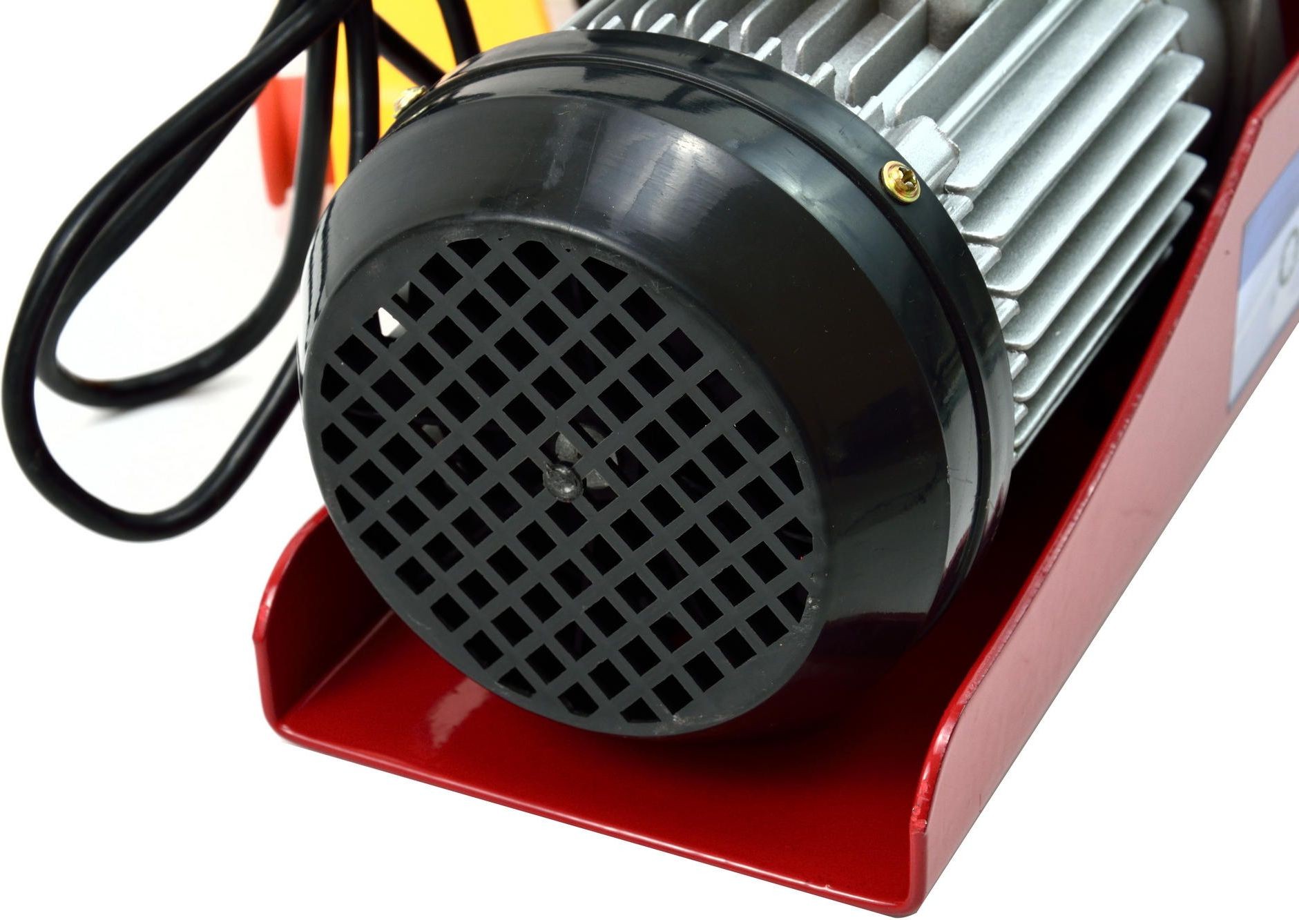 Professionelle elektrische Seilwinde mit einer Leistung von 1300 W und einer Tragkraft von bis zu 800 kg. Die Winde ist ein professionelles Gerät zum Heben schwerer Gegenstände in vertikaler Richtung. Sie wird häufig beim Hausbau und bei Renovierungsarbeiten sowie in Kfz-Werkstätten eingesetzt. Produktmerkmale Leistung: 1300 W Seillänge: 12 m Seildurchmesser: 5 mm Abmessungen der Basis: 147 x 410 mm Tragkraft an einem Haken: 400 kg Tragkraft an zwei Haken: 800 kg Hubgeschwindigkeit an einem Haken: 12 m/min Hubgeschwindigkeit an zwei Haken: 6 m/min Hubhöhe bei einem Haken: 12 m Hubhöhe bei zwei Haken: 6 m automatischer Sicherheitsschalter die Kupferwicklung des Windenmotors erhöht die Lebensdauer des Motors im Vergleich zu einer Aluminiumwicklung erheblich robustes Aluminiumgehäuse des Motors mit vergrößerten Kühlrippen, was eine effektivere Wärmeableitung ermöglicht vergrößerte Motorkühlturbine ergonomische Fernbedienung mit 140 cm langem Kabel CE-Zertifikat Lieferumfang elektrische Seilwinde 2 Befestigungshalterungen 4 Befestigungsschrauben mit Unterlegscheiben zusätzlicher Haken mit Seilrolle