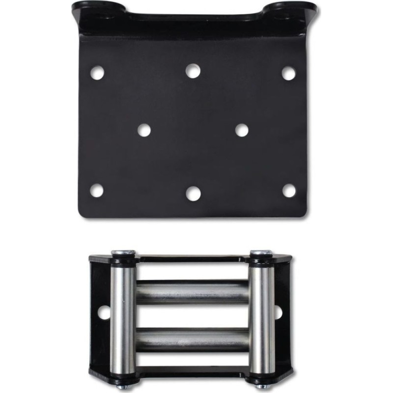 Der Lieferumfang umfasst: 1x Winde, 1x Montageplatte, 1x Seilführung, 1x Funkfernbedienung, 1x Haken mit Seil, Netzkabel sowie Montagezubehör (Schrauben und Muttern).
