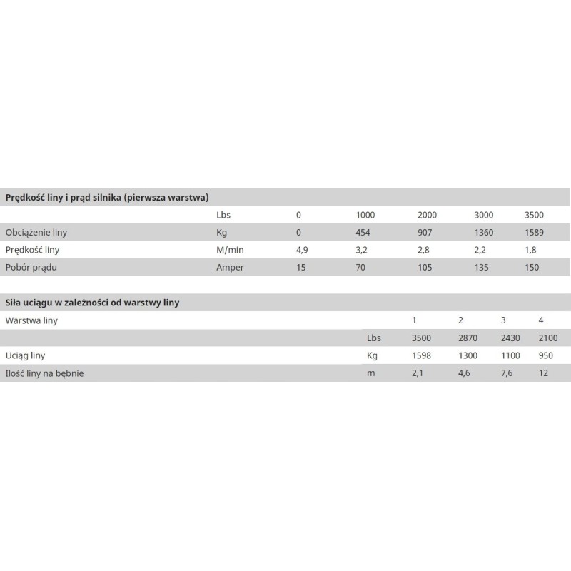 • Zugkraft (Einzelseil): 3500 lbs / 1587 kg
