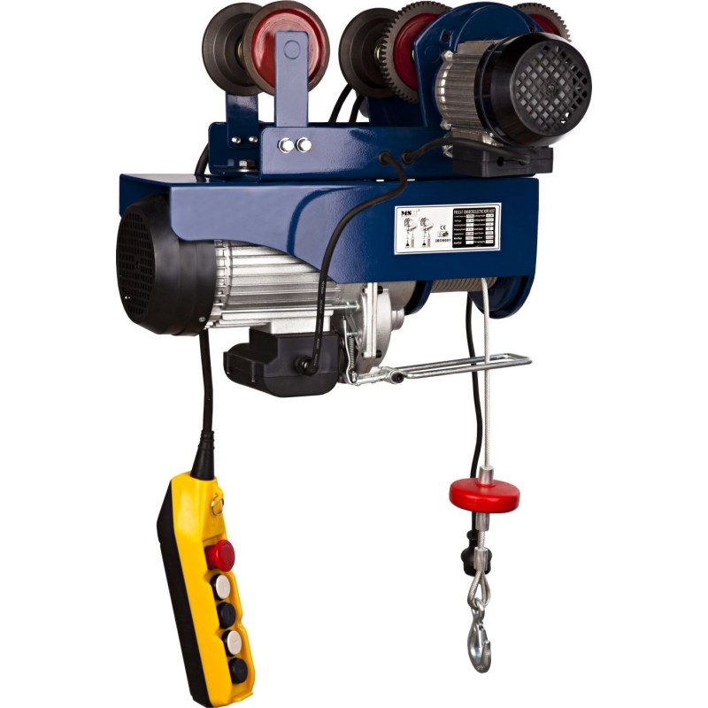 :- Leistung – Der 1800-W-Motor ermöglicht das Heben von Lasten mit einem Gewicht von bis zu 990 kg auf eine Höhe von 12 m (6 m bei Lasten über 600 kg), - Effizienz – Geschwindigkeit im Bereich von 4–8 m/s vertikal und bis zu 13 m/min horizontal, - Komfort – abnehmbares Seilblock, drehbarer Haken und Sicherheitsverriegelung, - Sicherheit – Rutschkupplung mit Spannungskontrolle und Überlastschutz sowie ein stromunabhängiges elektromagnetisches Bremssystem, - Intuitiv – funktionale Fernbedienung im Lieferumfang enthalten.