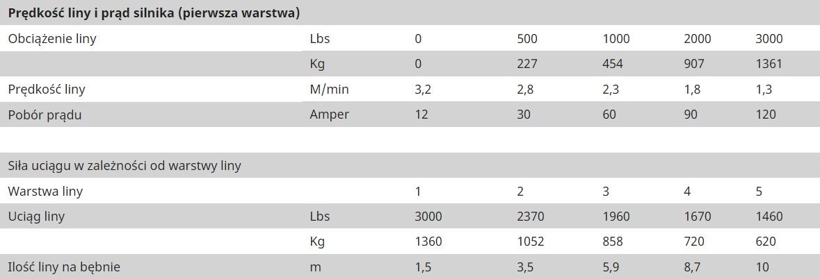 • Zugkraft (Einzelseil): 3000 lbs / 1361 kg