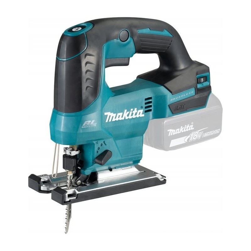 Die Makita DJV184Z ist eine bürstenlose Akku-Stichsäge, die mit einer Schalterarretierung ausgestattet ist, die einen unterbrechungsfreien Betrieb des Geräts gewährleistet. Ein Drehknopf erleichtert die Einstellung der Arbeitsgeschwindigkeit. Die Makita-Stichsäge verfügt über ein integriertes Späneausblas-System, das die Späne entfernt, die sich normalerweise um die Schnittlinie ansammeln. Der intuitive, werkzeuglose Sägeblattwechsel sorgt dafür, dass der Austausch nur einen Augenblick dauert.