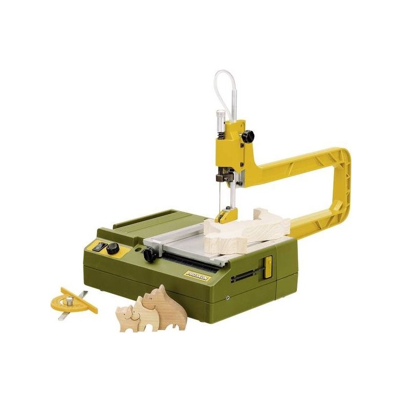 Schneidet Aluminium, Holz, Polycarbonat und Kunststoffe mit Standard-Sägeblättern. Verfügt über eine elektronische Vorschubregelung. Für Präzisionsarbeiten mit breitem Anwendungsspektrum in: Modellbau, Feinmechanik oder zur Spielzeugherstellung. Mit stufenloser Drehzahlregelung. Schneidet weiches Holz bis zu einer Stärke von 40 mm, Hartholz bis ca. 10 mm, Kunststoffe (einschließlich Polycarbonat) bis ca. 4 mm und Nichteisenmetalle bis 2 mm.