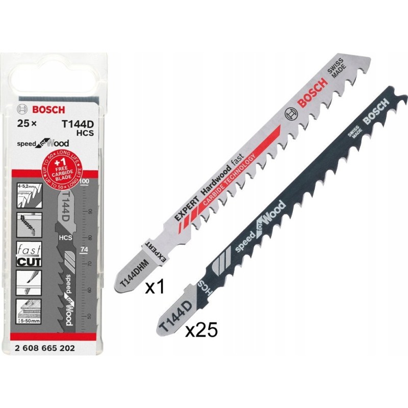 Bosch Professional 25x T 144 D + 1x Expert Hardwood Fast T 144 DHM Stichsägeblatt (für Holz, Hartholz, Stichsägezubehör)