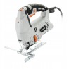 Die Stichsäge wurde mit Blick auf die Sicherheit und den Komfort des Benutzers entwickelt. Der rutschfeste Griff sorgt für einen sicheren Halt, was besonders bei intensiver Arbeit wichtig ist. Darüber hinaus erleichtert die Laserfunktion die präzise Führung des Schnitts.