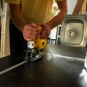 - Mit dem speziellen Kanten-Sägeblatt DT2074 kann bis an die Kante gesägt werden