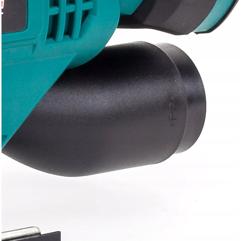 Die Säge ist für die Absaugung von Staub und Spänen während des Schneidens durch den Anschluss an einen Industriestaubsauger ausgelegt – ein Adapter ist im Lieferumfang enthalten.
