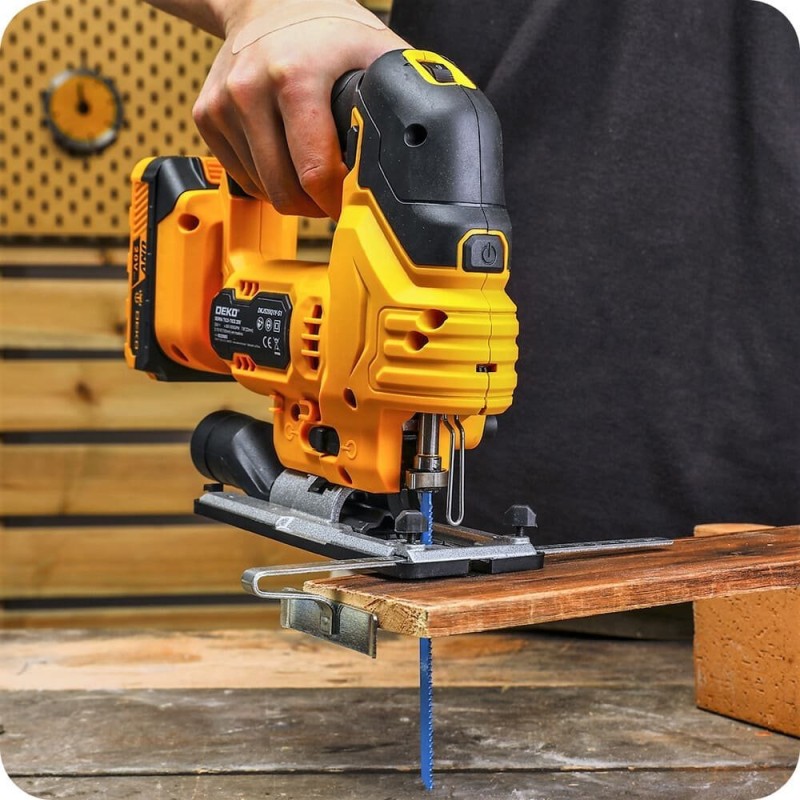 Die Stichsäge DEKO DKJS20Q1Y ist ein unverzichtbares Gerät für die Bearbeitung von Holz und Metall. Mit dem Drehknopf zur Drehzahlregelung lässt sich die Drehzahl an die jeweilige Anwendung anpassen. Sie verfügt über einen vollständig aus Metall gefertigten, hebelbetätigten, schraubenlosen Sägeblattwechsel, der einen schnellen und einfachen Austausch ermöglicht. Die robuste und leichte Konstruktion sorgt für weniger Ermüdung. Der Akkuantrieb erhöht den Arbeitskomfort. Die Stichsäge ist ideal für Arbeiten auf der Baustelle oder für Heimwerkerarbeiten rund ums Haus.